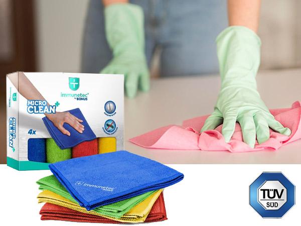 Különböző helyiségek, különböző felületek - erre nyújt megoldást az IMMUNETEC MicroCLEAN PLUS törlőkendő. A csomagban 4, különböző színű kendő található, így minden helyiségben más-más színnel tudod tisztán tartani a környezetet. A kendőben lévő ezüstion adalékanyag meggátolja a felületek felszínén a kórokozók megtelepedését és szaporodását.